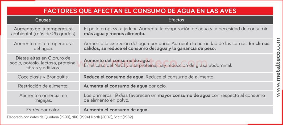 FACTORES QUE AFECTAN EL CONSUMO DE AGUA EN LA AVICULTURA TABLA 1